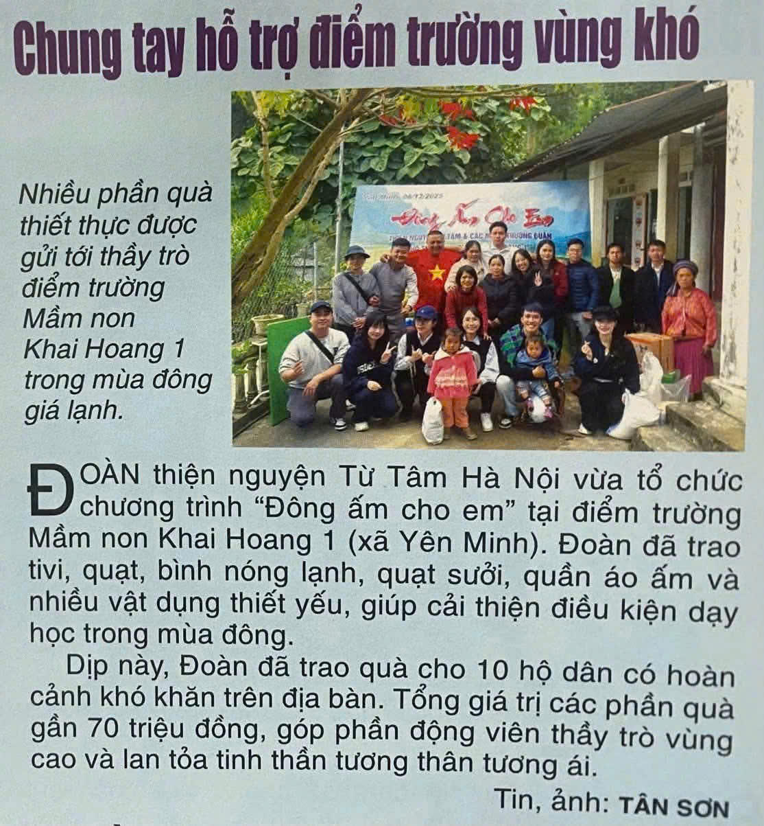 Thực hiện hoạt động nhân ái, sẻ chia yêu thương, Trường Mầm non Yên Định vinh dự hưởng ứng lời kêu gọi của Nhóm thiện nguyện “Những người con Hải Hậu – Nam Định”, chung tay ủng hộ trường Mầm non Khai Khoang 1 (Tuyên Quang) – nơi các em nhỏ vùng cao còn nhiều khó khăn trong mùa đông giá rét.