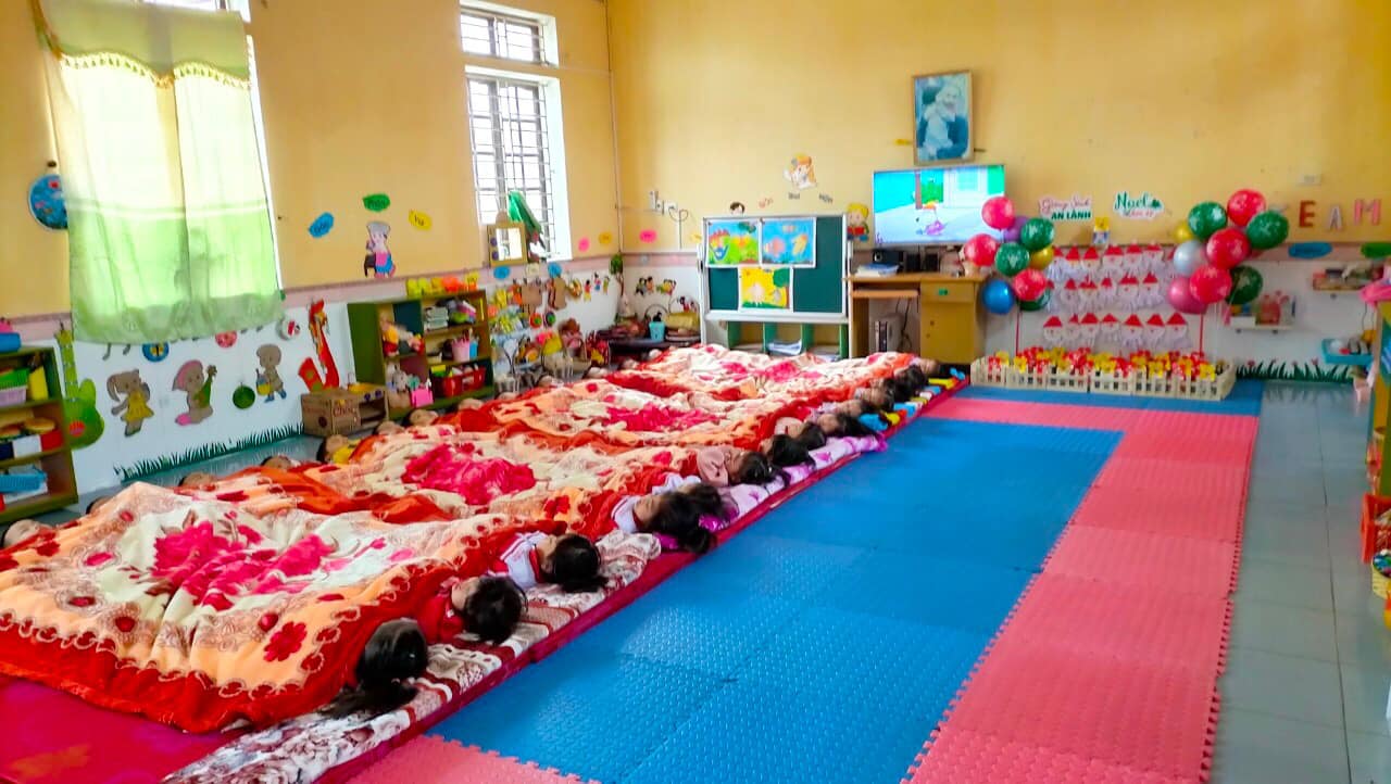 Phòng ngủ được vệ sinh sạch sẽ; chăn, gối, giường ngủ giặt giũ, phơi nắng thường xuyên. Giáo viên chú ý giữ ấm cho trẻ khi ngủ, tránh gió lùa và theo dõi sức khỏe trẻ trong suốt thời gian nghỉ trưa.